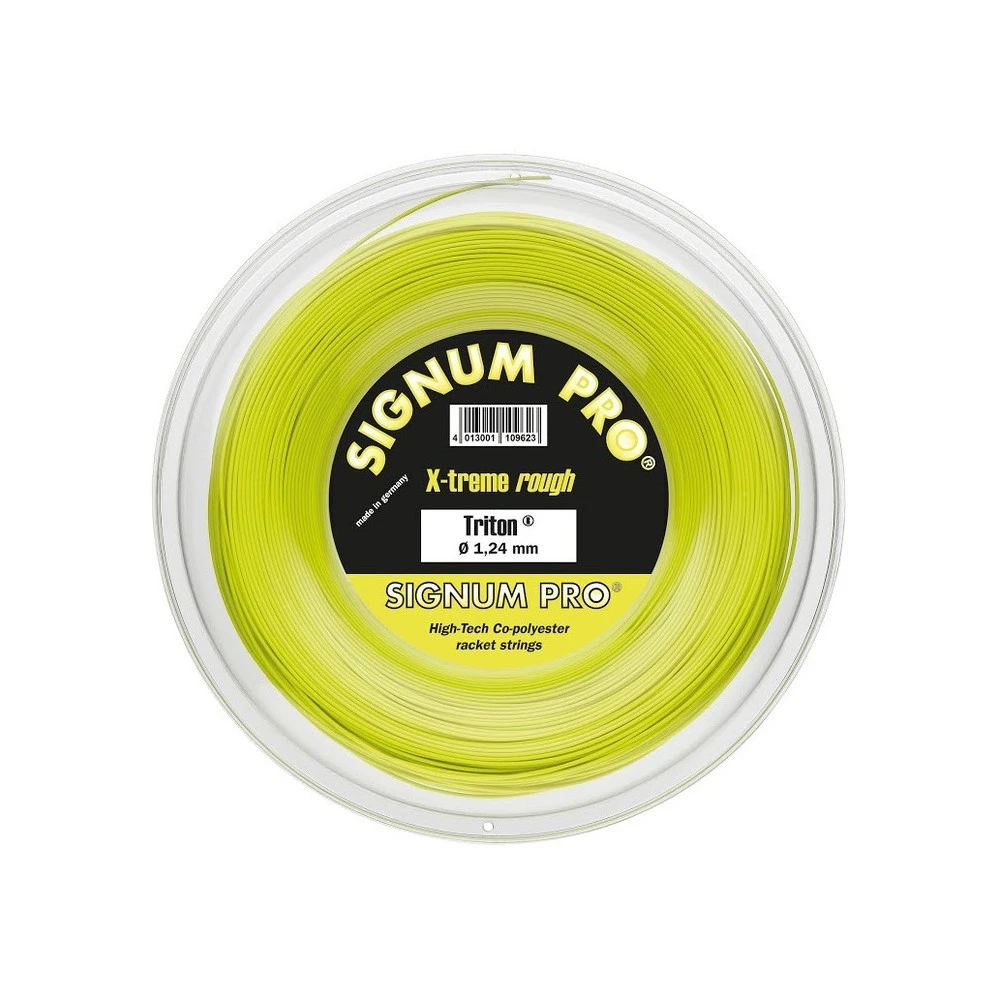 Le cordage Signum Pro Triton est un monofilament qui possède une surface unique granuleuse pour augmenter l’accroche de balle et les effets. Bobine de 200m