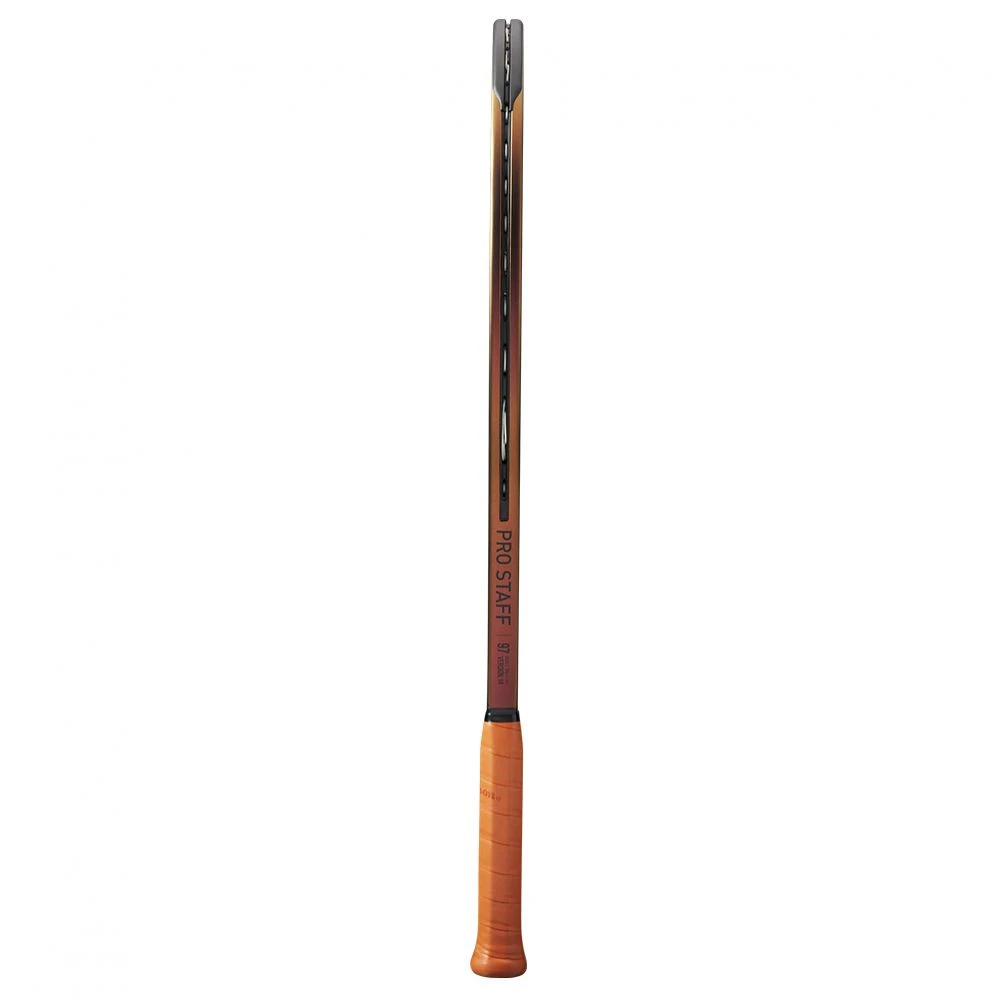 - Paradigm Bending : Construction en fibre de carbone stratégiquement conçue pour optimiser le profil de flexion du manche et de la tête de raquette. Plus de flexibilité pour un mélange idéal de précision et des sensations classiques des Pro Staff sans perte de puissance.